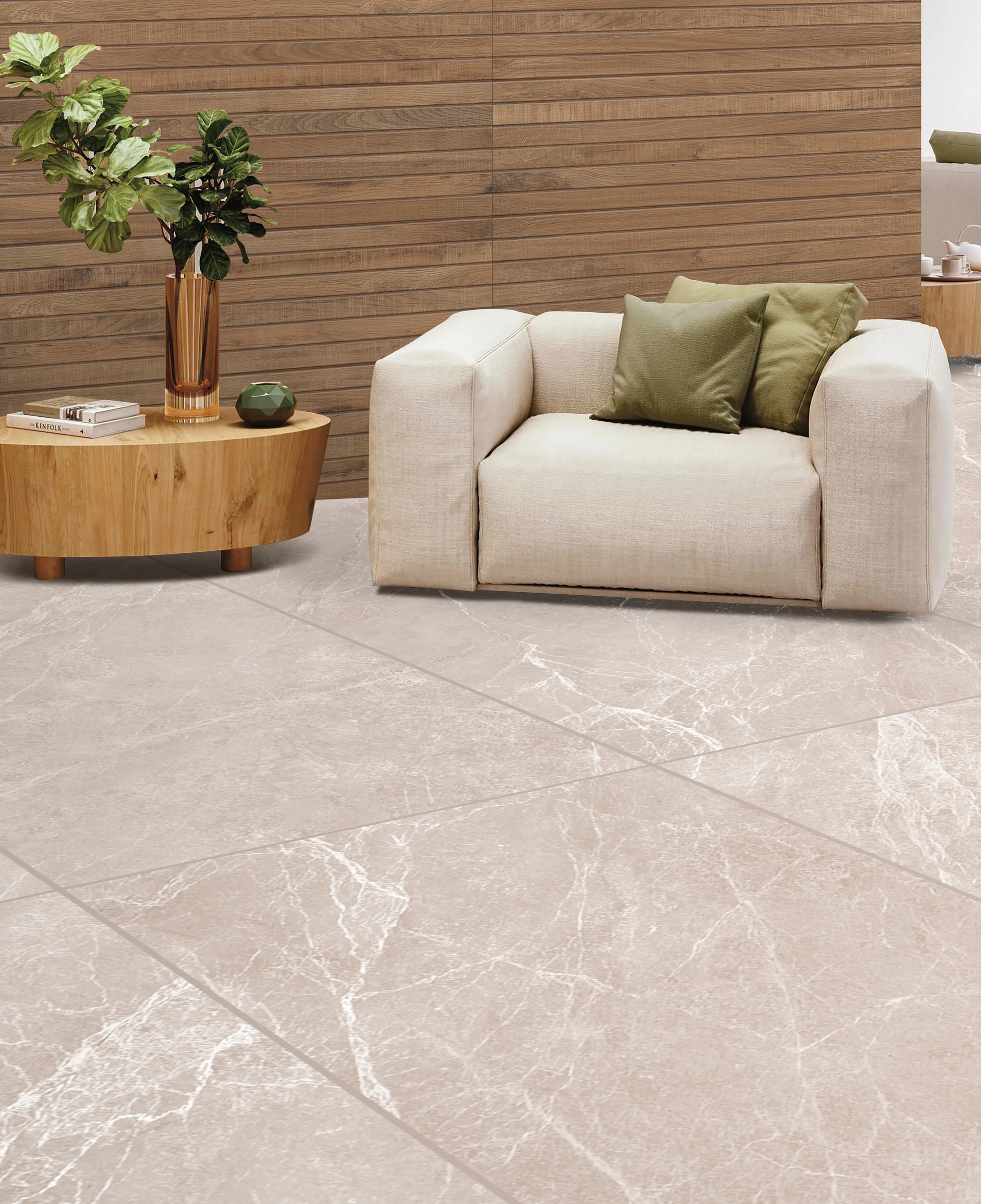 • 60x120 cm format enhances seamless and sophisticated interior layouts.